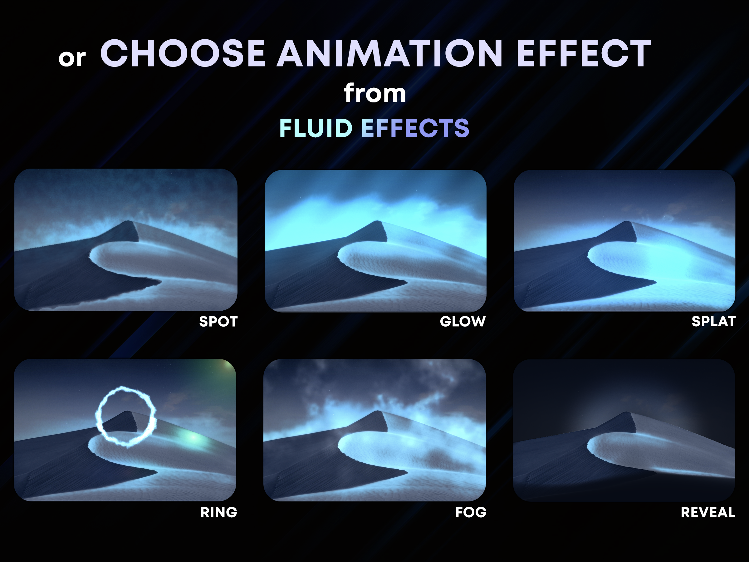 • 6 Fluid Effects - Spot, Glow, Splat, Rings, Fog, Reveal