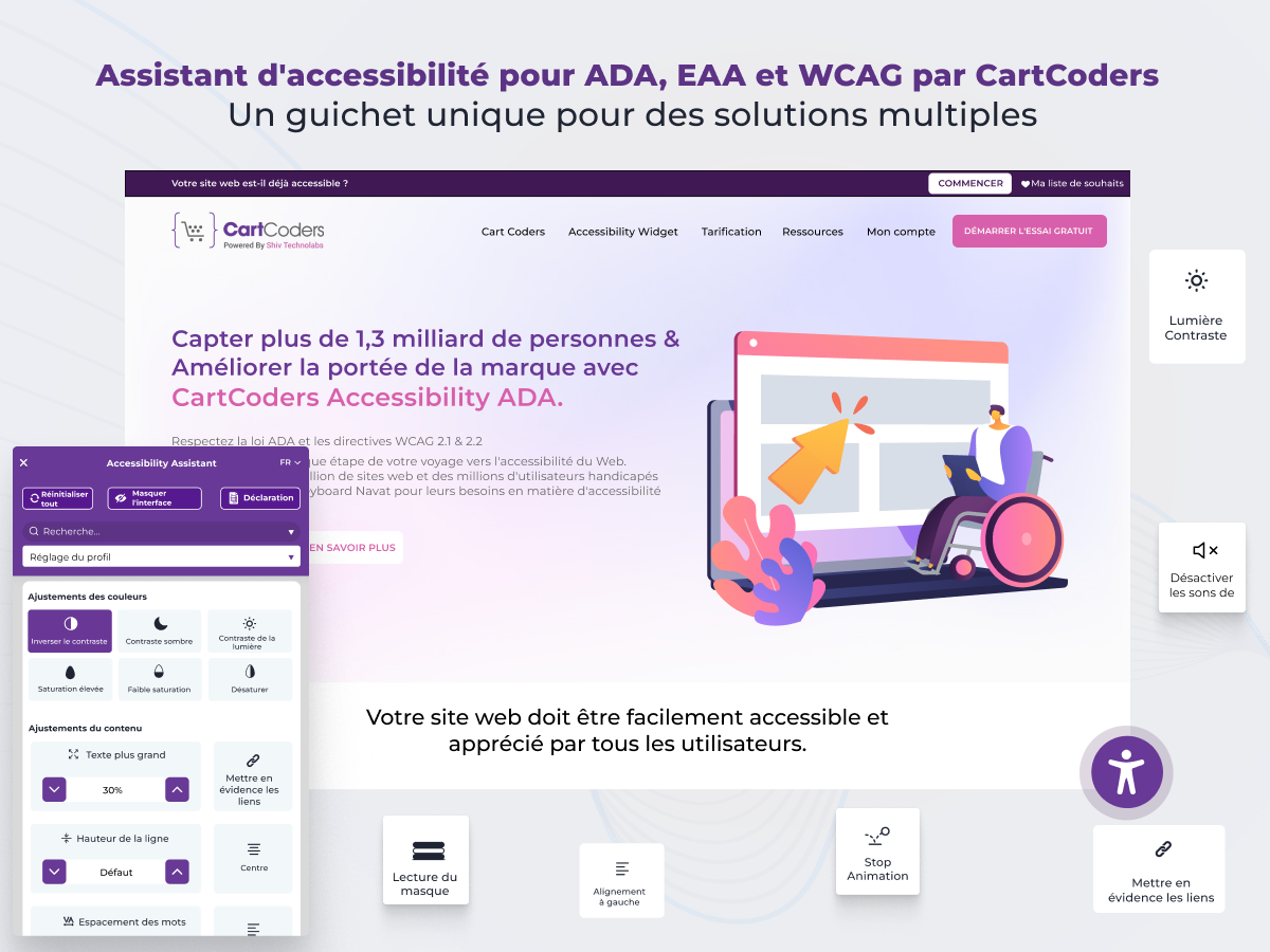Assurez la conformité ADA, WCAG, EAA et AODA en quelques clics et sans codage