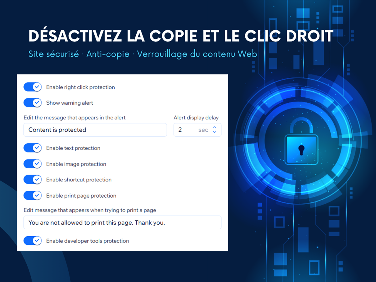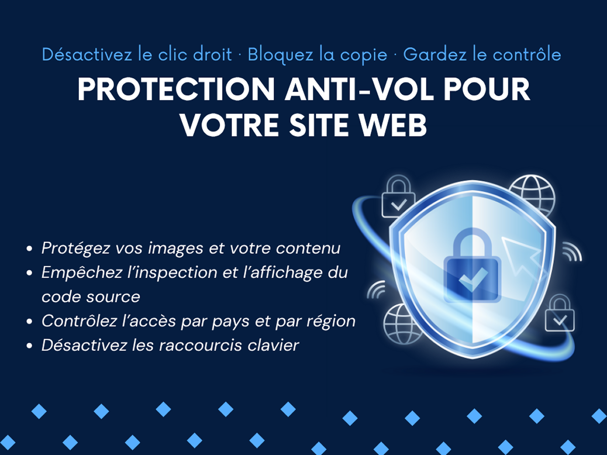 Bloquez le clic droit & la copie : protégez vos textes et images contre la duplication ou la sauvegarde.