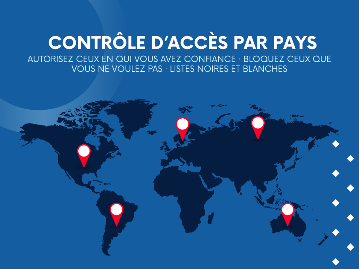 Protection & blocage IP : limitez l’accès par pays ou adresse IP.