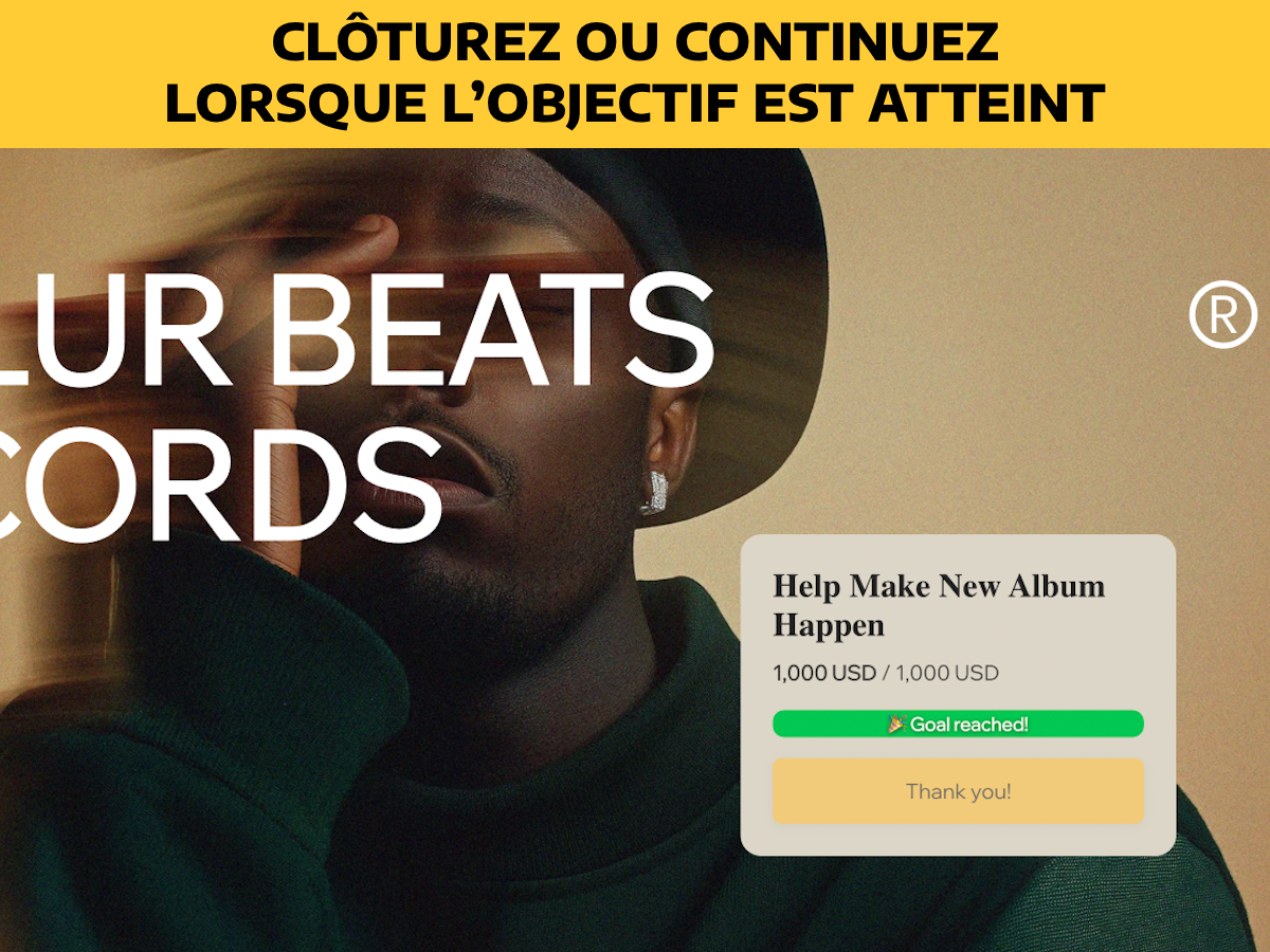 Contrairement aux outils de dons classiques, ce widget met l’accent sur un objectif tangible. Une fois atteint, vous pouvez clôturer la collecte ou continuer à accepter des contributions.