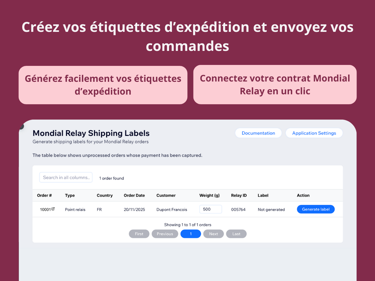 Générez et imprimez facilement vos étiquettes d’expédition Mondial Relay directement depuis votre tableau de bord, sans saisie manuelle.
