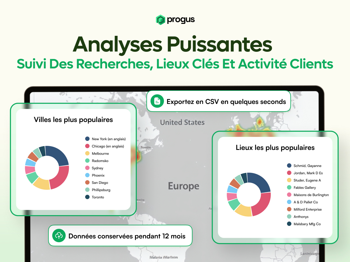 Notre solution de localisation de magasins permet à vos clients de trouver facilement vos emplacements physiques. Avec son design convivial et sa fonction de recherche, elle favorise les ventes en magasin et réduit les demandes au service client. Mettez en valeur vos magasins, revendeurs et distributeurs dans le monde entier. Grâce à nos analyses avancées, identifiez où vos clients recherchent vos produits et comprenez mieux leurs besoins. Essayez-la dès aujourd’hui.
