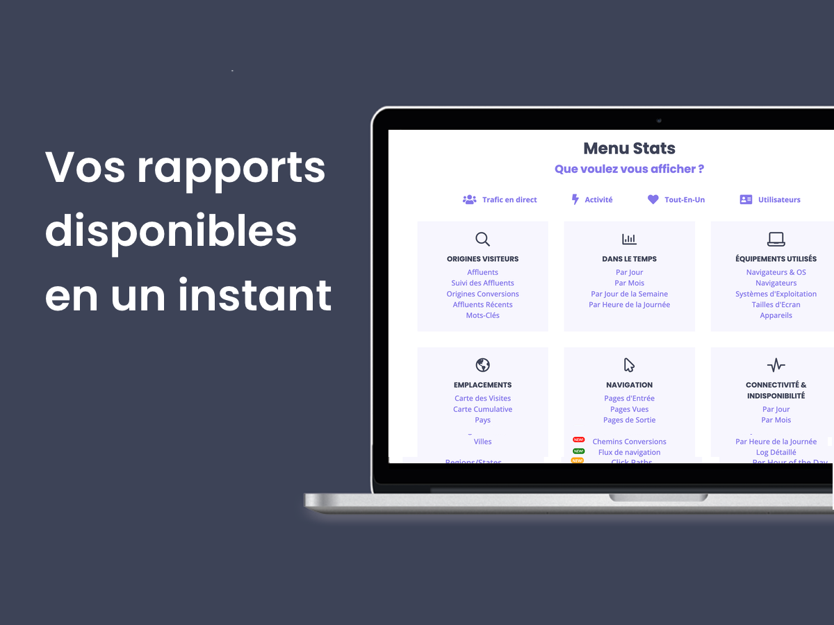 Des analyses puissantes, présentées clairement : accédez aux mêmes données visiteurs de haute qualité que celles des outils d’analytics avancés, présentées dans des rapports clairs, lisibles et conçus pour une compréhension et une action immédiates.